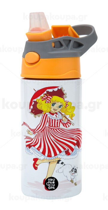 Candy, Children's hot water bottle, stainless steel, with safety straw, Orange/Grey (360ml) BPA-FREE