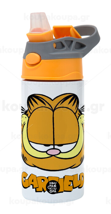 Garfield, Children's hot water bottle, stainless steel, with safety straw, Orange/Grey (360ml) BPA-FREE