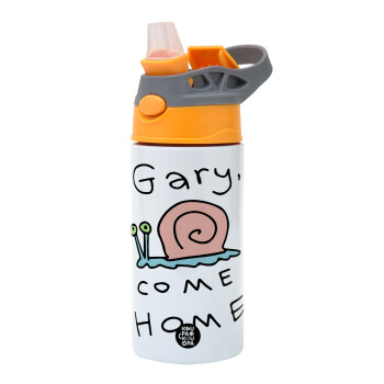 Gary come home, Children's hot water bottle, stainless steel, with safety straw, Orange/Grey (360ml) BPA-FREE