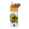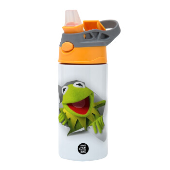 Kermit the frog, Children's hot water bottle, stainless steel, with safety straw, Orange/Grey (360ml) BPA-FREE