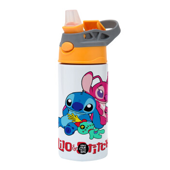Lilo & Stitch, Children's hot water bottle, stainless steel, with safety straw, Orange/Grey (360ml) BPA-FREE