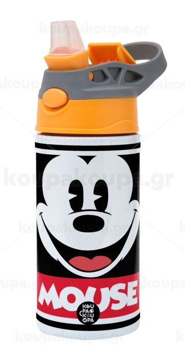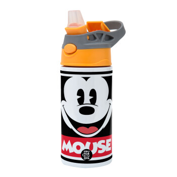 Mickey Mouse, Children's hot water bottle, stainless steel, with safety straw, Orange/Grey (360ml) BPA-FREE