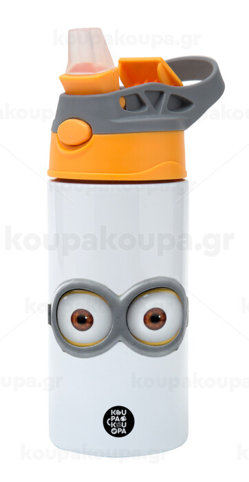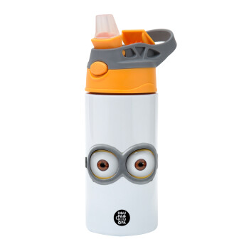 Minions, Children's hot water bottle, stainless steel, with safety straw, Orange/Grey (360ml) BPA-FREE