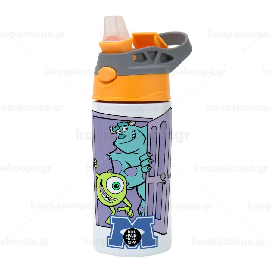 Monster inc, Children's hot water bottle, stainless steel, with safety straw, Orange/Grey (360ml) BPA-FREE