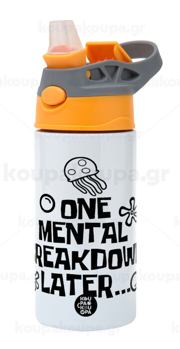 one mental breakdown later bob spongebob, Children's hot water bottle, stainless steel, with safety straw, Orange/Grey (360ml) BPA-FREE