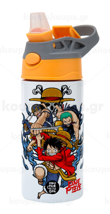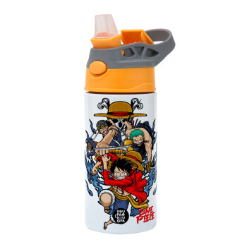 One Piece, Children's hot water bottle, stainless steel, with safety straw, Orange/Grey (360ml) BPA-FREE