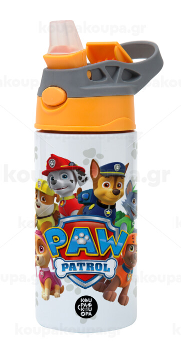 PAW patrol, Children's hot water bottle, stainless steel, with safety straw, Orange/Grey (360ml) BPA-FREE