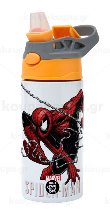 Spider-man, Children's hot water bottle, stainless steel, with safety straw, Orange/Grey (360ml) BPA-FREE