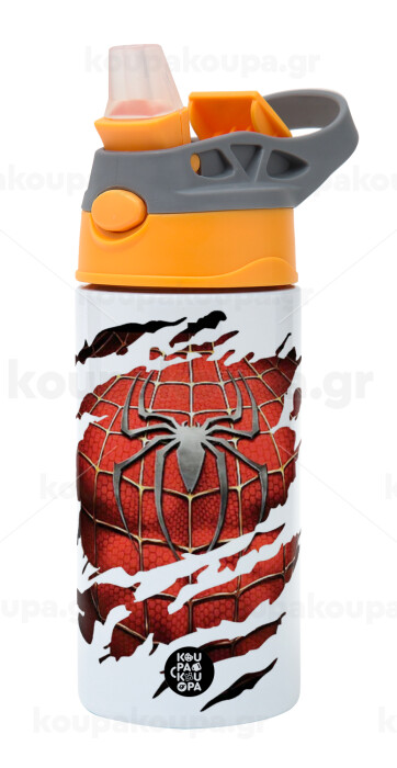 Spiderman cracked, Children's hot water bottle, stainless steel, with safety straw, Orange/Grey (360ml) BPA-FREE
