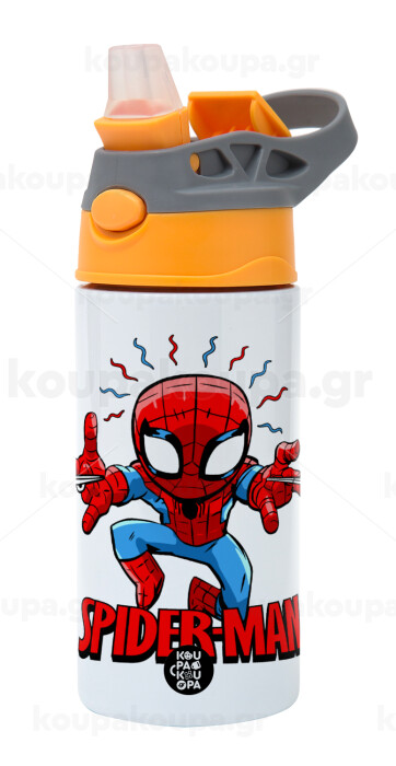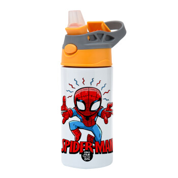 Spiderman flying, Children's hot water bottle, stainless steel, with safety straw, Orange/Grey (360ml) BPA-FREE