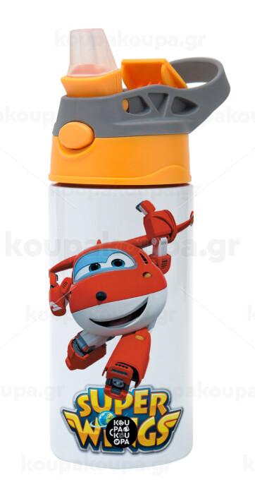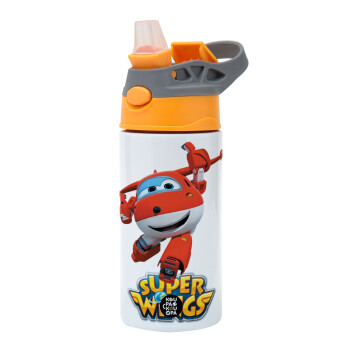 Super Wings, Children's hot water bottle, stainless steel, with safety straw, Orange/Grey (360ml) BPA-FREE