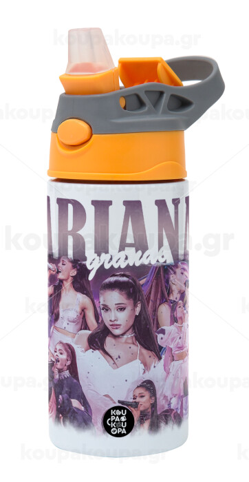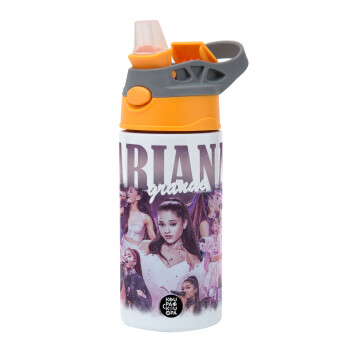 Ariana Grande, Children's hot water bottle, stainless steel, with safety straw, Orange/Grey (360ml) BPA-FREE