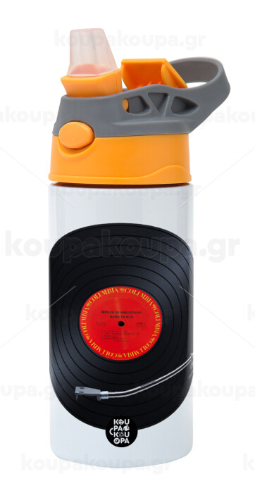 Columbia records bruce springsteen, Children's hot water bottle, stainless steel, with safety straw, Orange/Grey (360ml) BPA-FREE