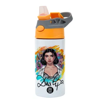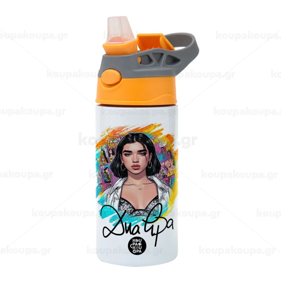 Dua lipa, Children's hot water bottle, stainless steel, with safety straw, Orange/Grey (360ml) BPA-FREE