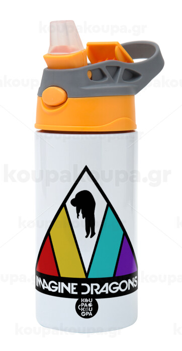 Imagine Dragons, Children's hot water bottle, stainless steel, with safety straw, Orange/Grey (360ml) BPA-FREE