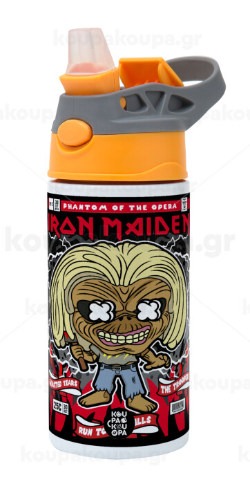 Iron maiden (eddie), Children's hot water bottle, stainless steel, with safety straw, Orange/Grey (360ml) BPA-FREE