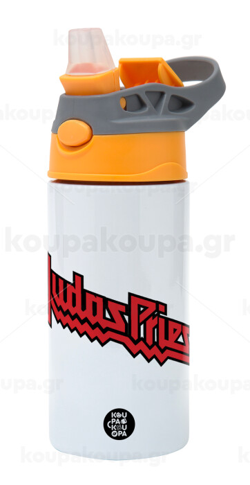 Judas Priest, Children's hot water bottle, stainless steel, with safety straw, Orange/Grey (360ml) BPA-FREE