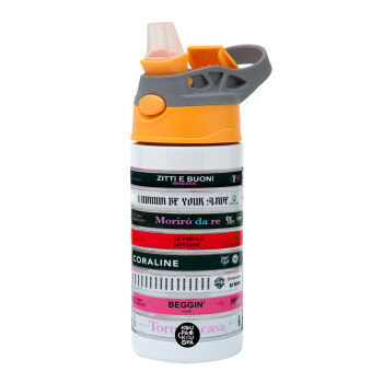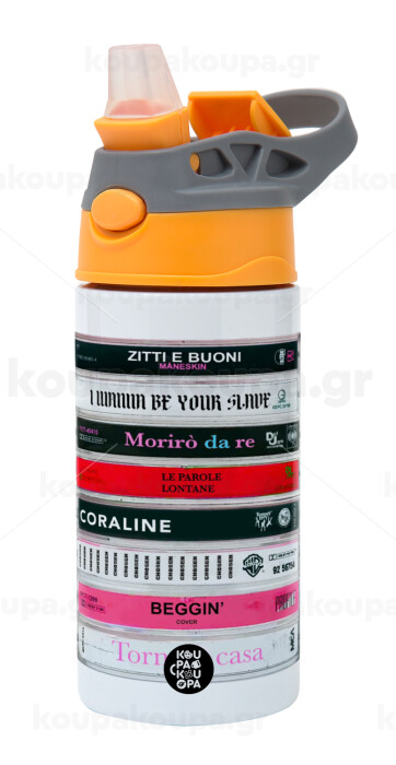 Maneskin Cassette, Children's hot water bottle, stainless steel, with safety straw, Orange/Grey (360ml) BPA-FREE