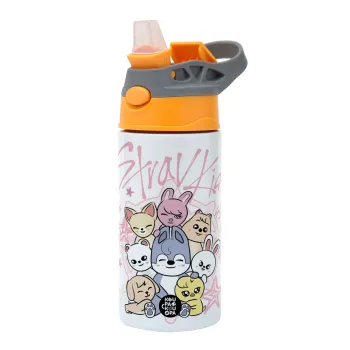 Stray Kids Pink, Children's hot water bottle, stainless steel, with safety straw, Orange/Grey (360ml) BPA-FREE