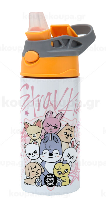 Stray Kids Pink, Children's hot water bottle, stainless steel, with safety straw, Orange/Grey (360ml) BPA-FREE