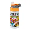 Friends, Children's hot water bottle, stainless steel, with safety straw, Orange/Grey (360ml) BPA-FREE