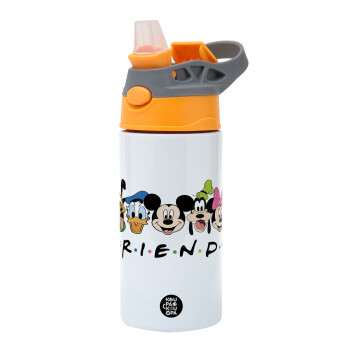 Friends characters, Children's hot water bottle, stainless steel, with safety straw, Orange/Grey (360ml) BPA-FREE