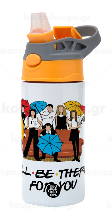 Friends cover, Children's hot water bottle, stainless steel, with safety straw, Orange/Grey (360ml) BPA-FREE