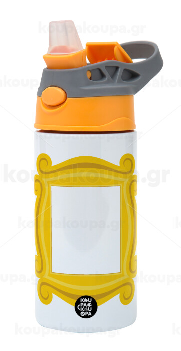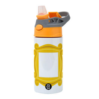 Friends frame, Children's hot water bottle, stainless steel, with safety straw, Orange/Grey (360ml) BPA-FREE