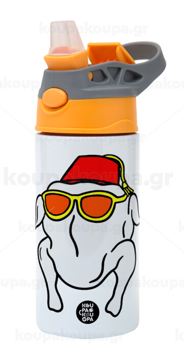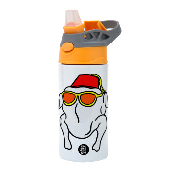 Friends turkey, Children's hot water bottle, stainless steel, with safety straw, Orange/Grey (360ml) BPA-FREE