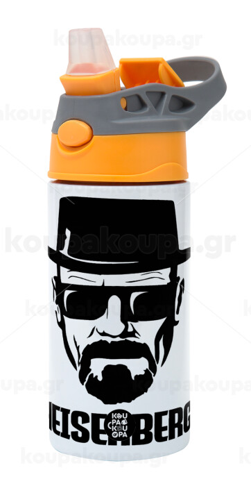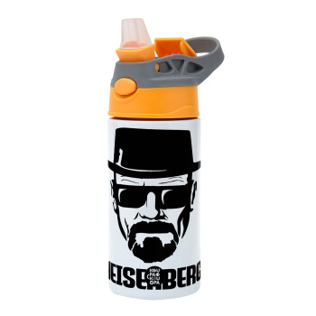 Heisenberg breaking bad, Children's hot water bottle, stainless steel, with safety straw, Orange/Grey (360ml) BPA-FREE