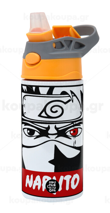 Naruto anime, Children's hot water bottle, stainless steel, with safety straw, Orange/Grey (360ml) BPA-FREE