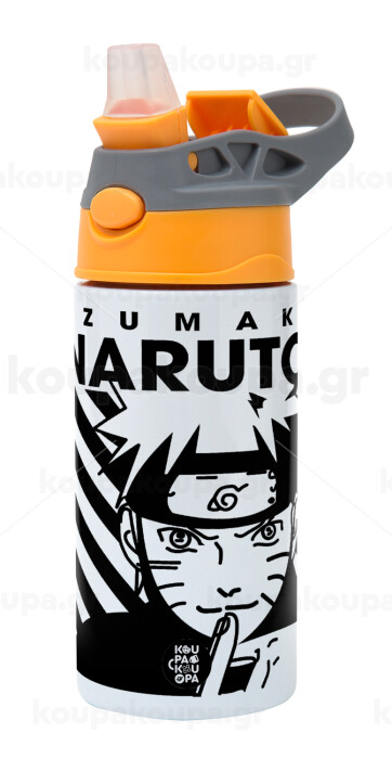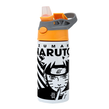 Naruto uzumaki, Children's hot water bottle, stainless steel, with safety straw, Orange/Grey (360ml) BPA-FREE