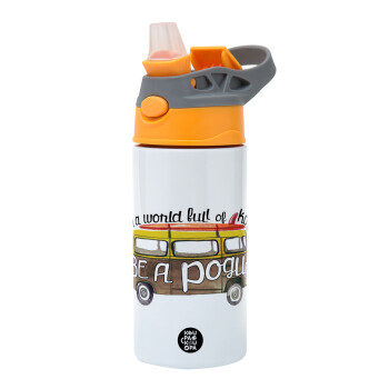Outerbanks Pogue Life, Children's hot water bottle, stainless steel, with safety straw, Orange/Grey (360ml) BPA-FREE