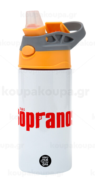 The Sopranos, Children's hot water bottle, stainless steel, with safety straw, Orange/Grey (360ml) BPA-FREE