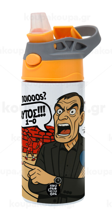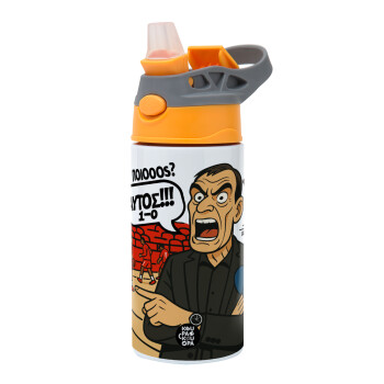 Μπαρτζό, Ποιος? Αυτός!!! 1-0, Children's hot water bottle, stainless steel, with safety straw, Orange/Grey (360ml) BPA-FREE