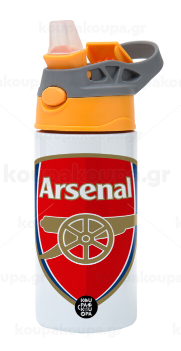 Arsenal, Children's hot water bottle, stainless steel, with safety straw, Orange/Grey (360ml) BPA-FREE