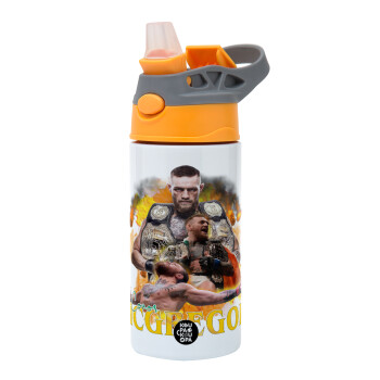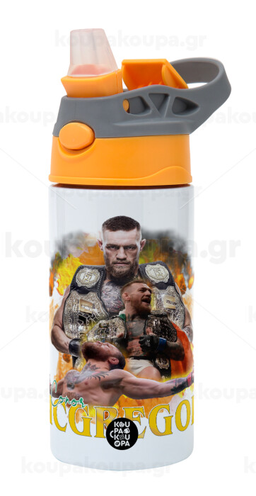Conor McGregor Notorious, Children's hot water bottle, stainless steel, with safety straw, Orange/Grey (360ml) BPA-FREE