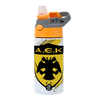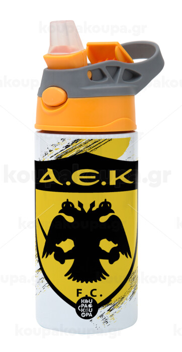 FC Α.Ε.Κ., Children's hot water bottle, stainless steel, with safety straw, Orange/Grey (360ml) BPA-FREE