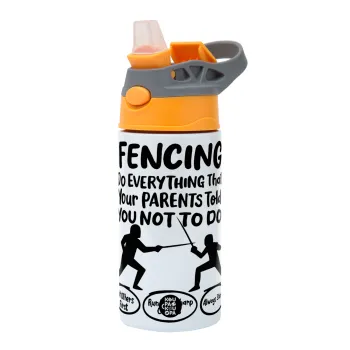 Fencing, do everything that your parents told you not to do., Children's hot water bottle, stainless steel, with safety straw, Orange/Grey (360ml) BPA-FREE