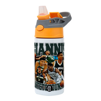 Giannis Antetokounmpo, Children's hot water bottle, stainless steel, with safety straw, Orange/Grey (360ml) BPA-FREE
