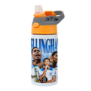 Jude Bellingham, Children's hot water bottle, stainless steel, with safety straw, Orange/Grey (360ml) BPA-FREE