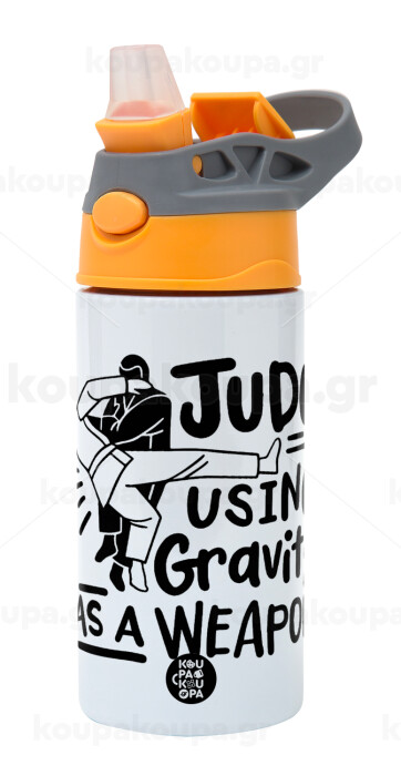Judo using gravity as a weapon, Children's hot water bottle, stainless steel, with safety straw, Orange/Grey (360ml) BPA-FREE