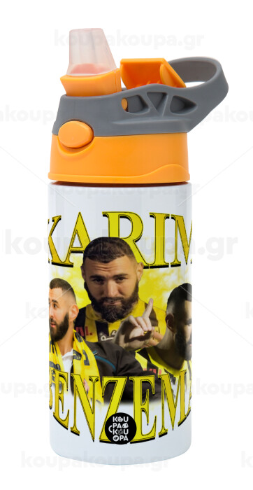 Karim Benzema, Children's hot water bottle, stainless steel, with safety straw, Orange/Grey (360ml) BPA-FREE