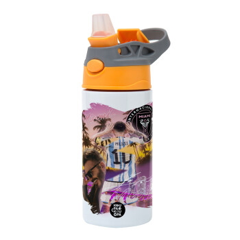 Lionel Messi Miami, Children's hot water bottle, stainless steel, with safety straw, Orange/Grey (360ml) BPA-FREE