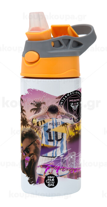 Lionel Messi Miami, Children's hot water bottle, stainless steel, with safety straw, Orange/Grey (360ml) BPA-FREE