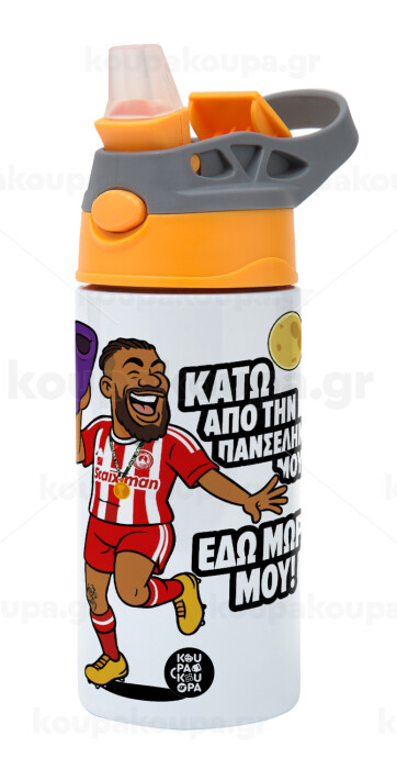 Ροντινέι, "ΚΑΤΩ ΑΠΟ ΤΗΝ ΠΑΝΣΕΛΗΝΟ ΜΟΥ!", Children's hot water bottle, stainless steel, with safety straw, Orange/Grey (360ml) BPA-FREE