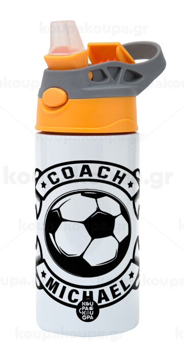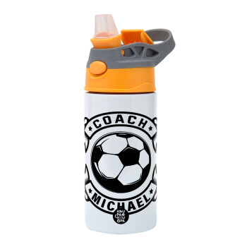 Soccer coach, Children's hot water bottle, stainless steel, with safety straw, Orange/Grey (360ml) BPA-FREE