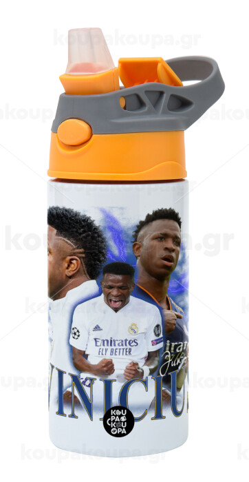 Vinicius Junior, Children's hot water bottle, stainless steel, with safety straw, Orange/Grey (360ml) BPA-FREE
