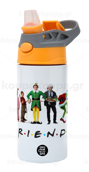 Christmas FRIENDS, Children's hot water bottle, stainless steel, with safety straw, Orange/Grey (360ml) BPA-FREE