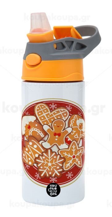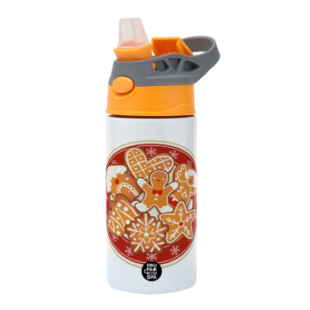 xmas cookies, Children's hot water bottle, stainless steel, with safety straw, Orange/Grey (360ml) BPA-FREE